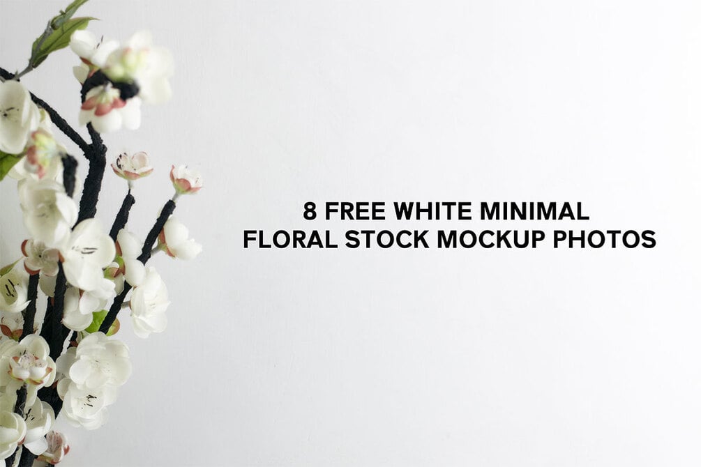 8 Free White Minimal Floral Stock Mockup Photos
